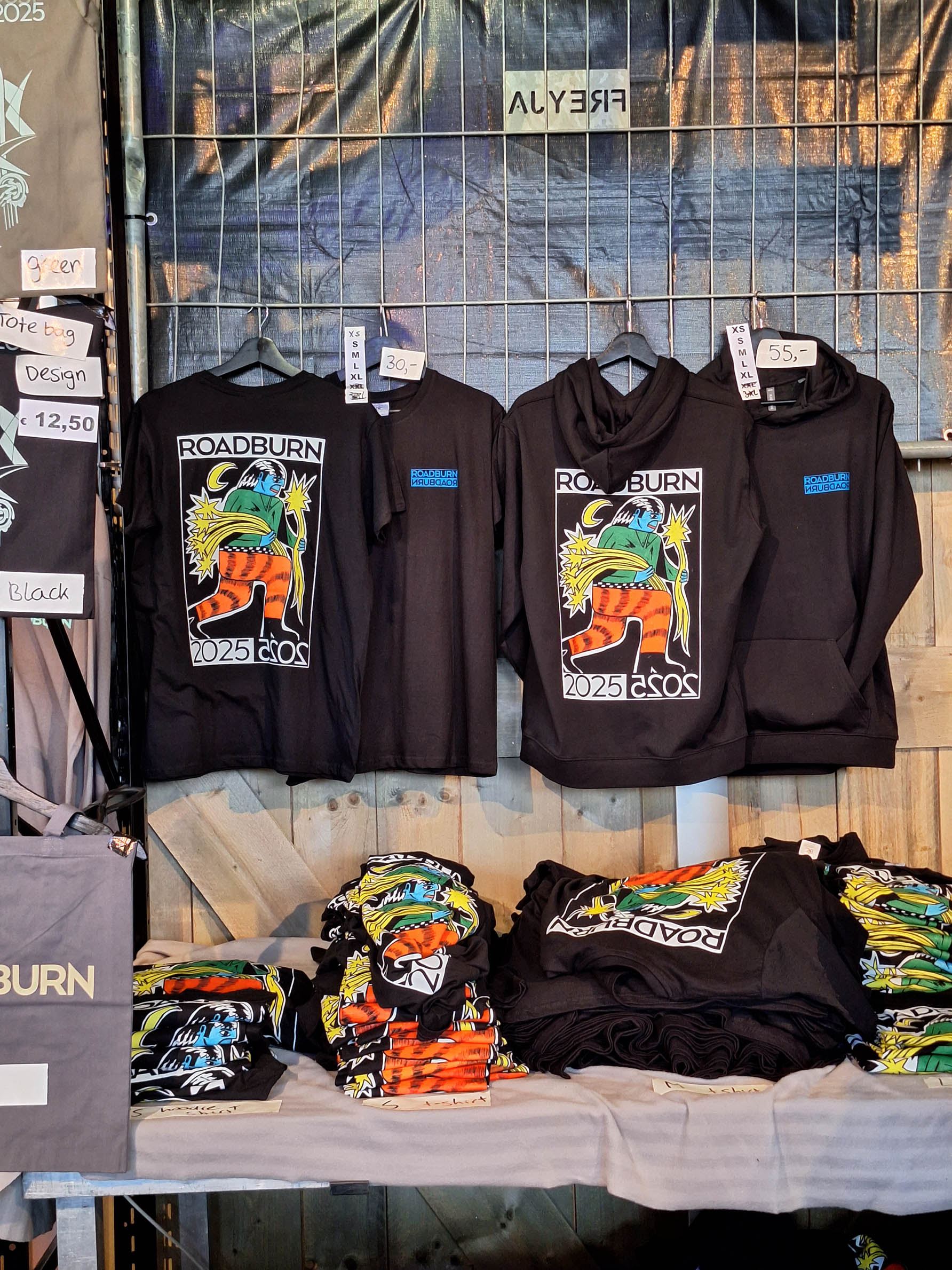 The artwork was printed on t-shirts, hoodies and bags.
